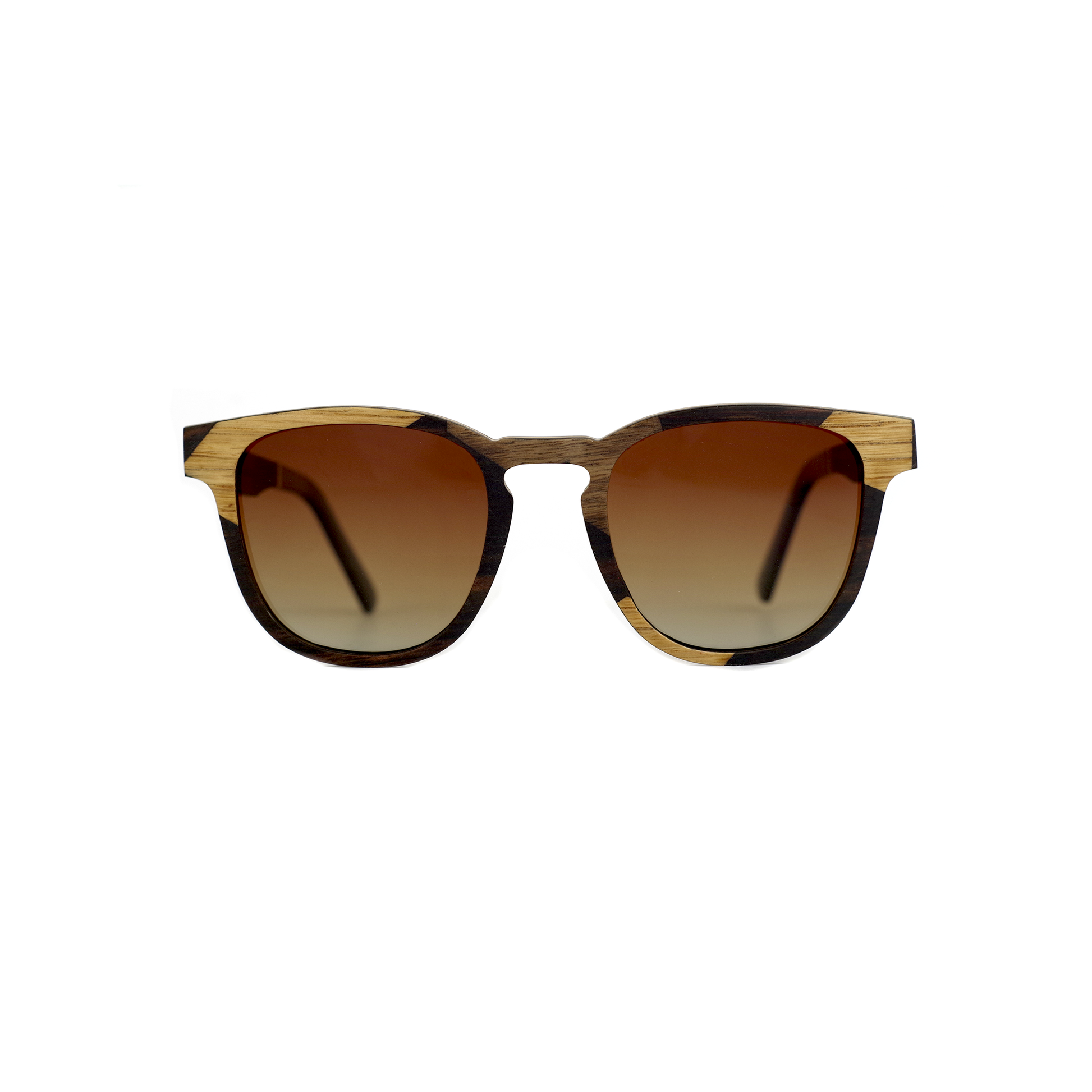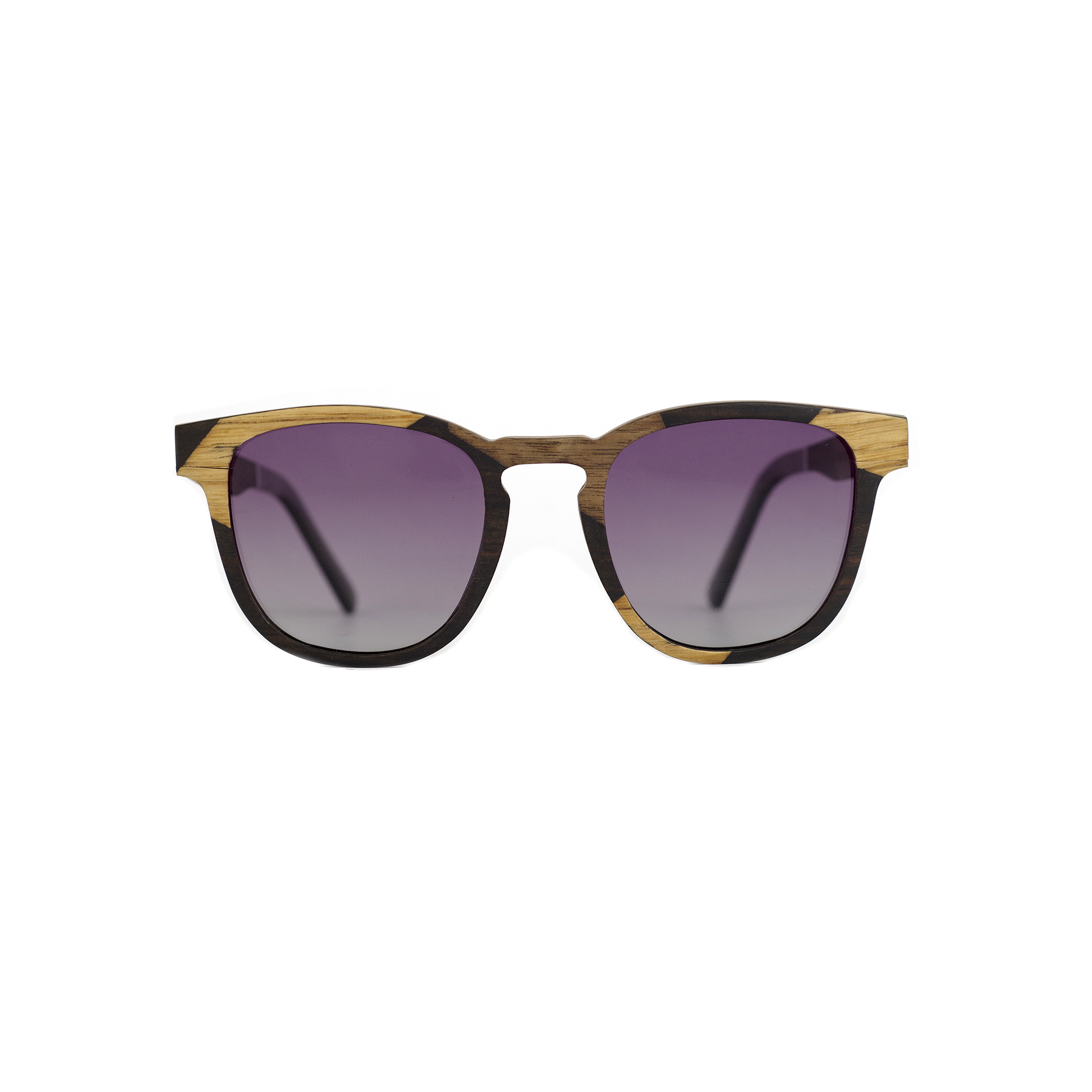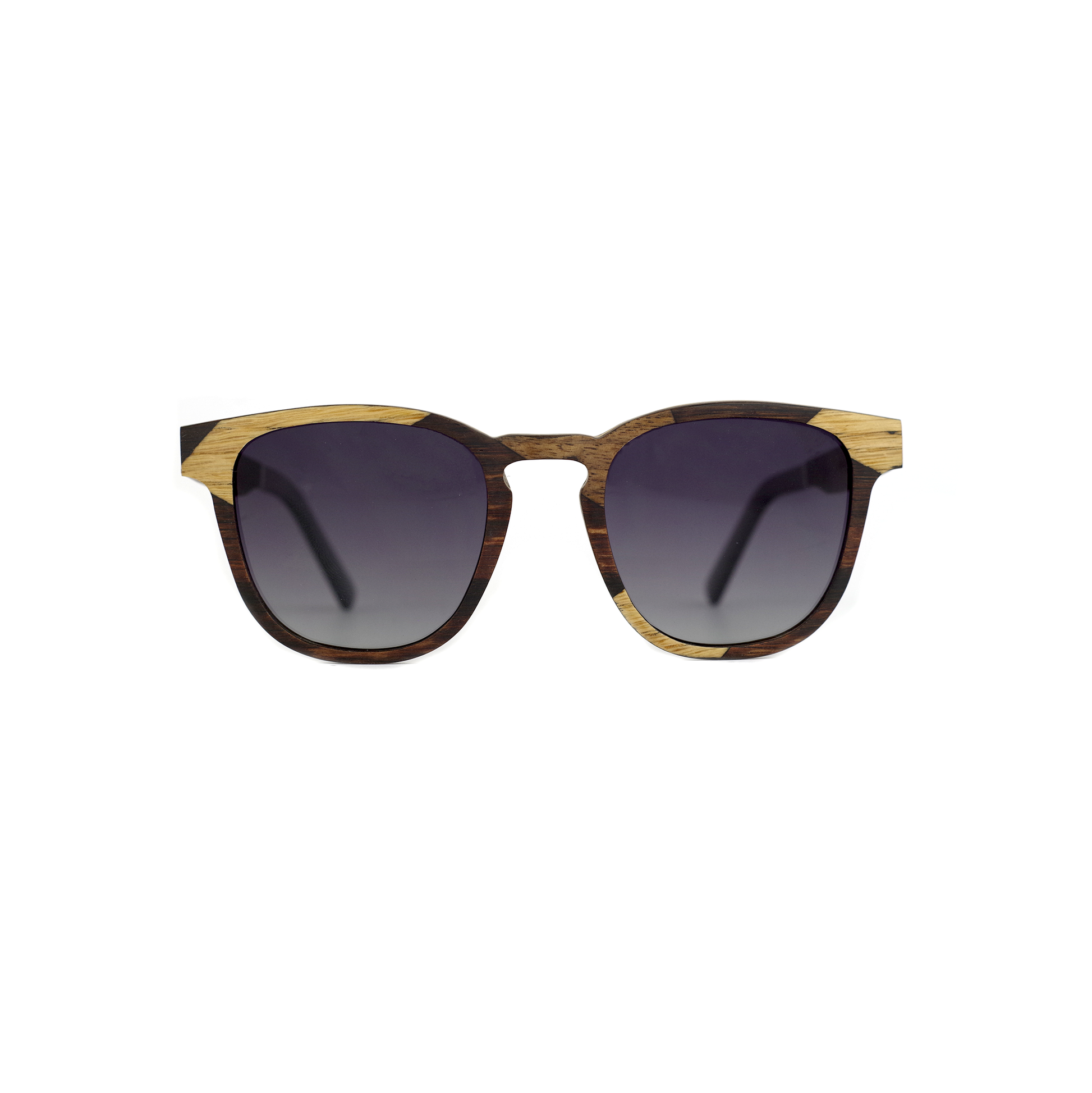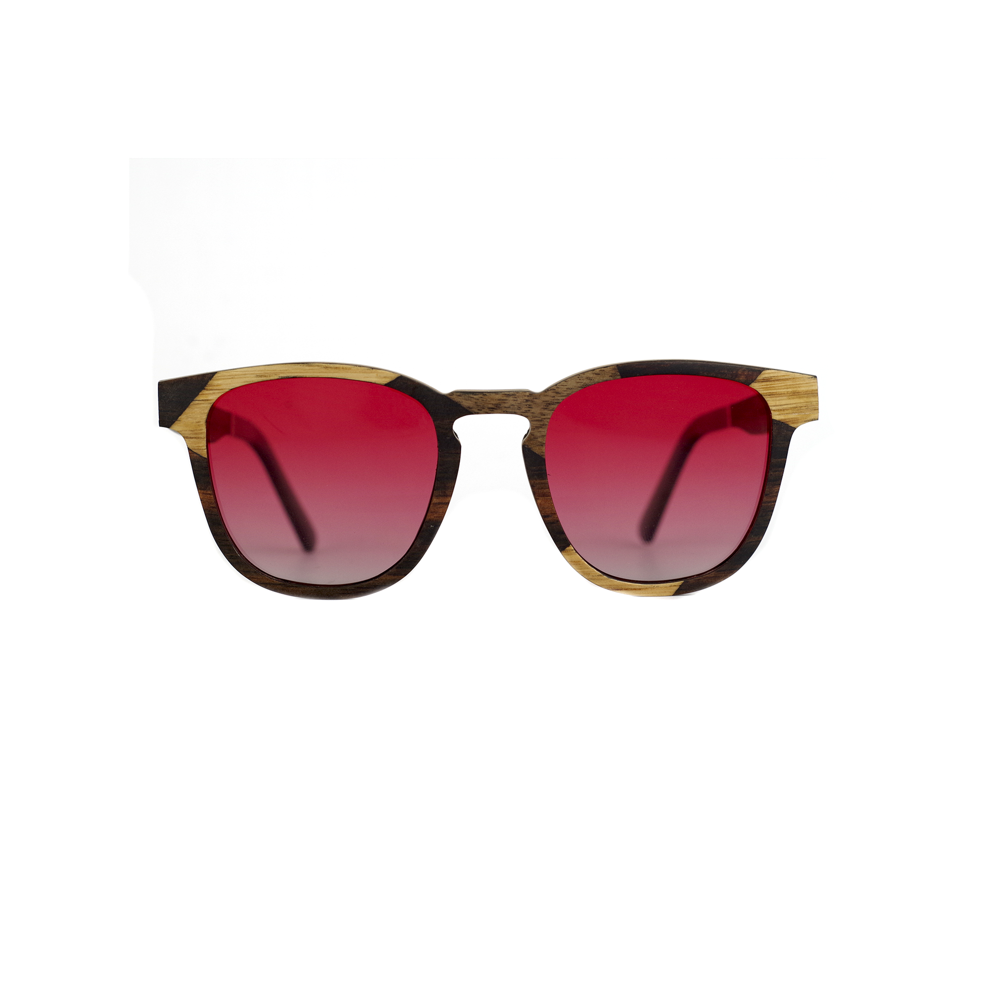 A template of wooden sunglasses out of the ordinary, with a great deal of particular work on the assembly of the woods on the front as well as on the branches.