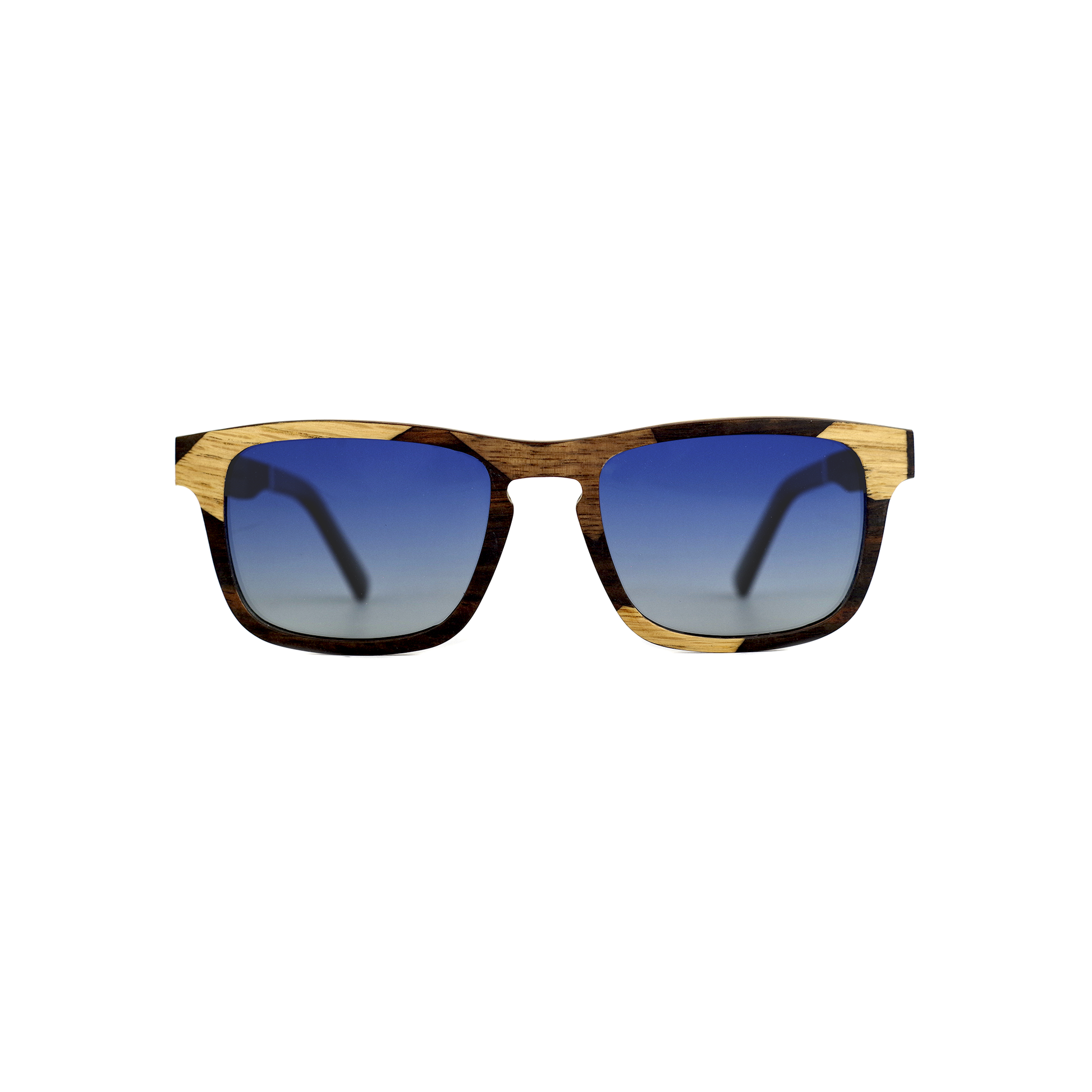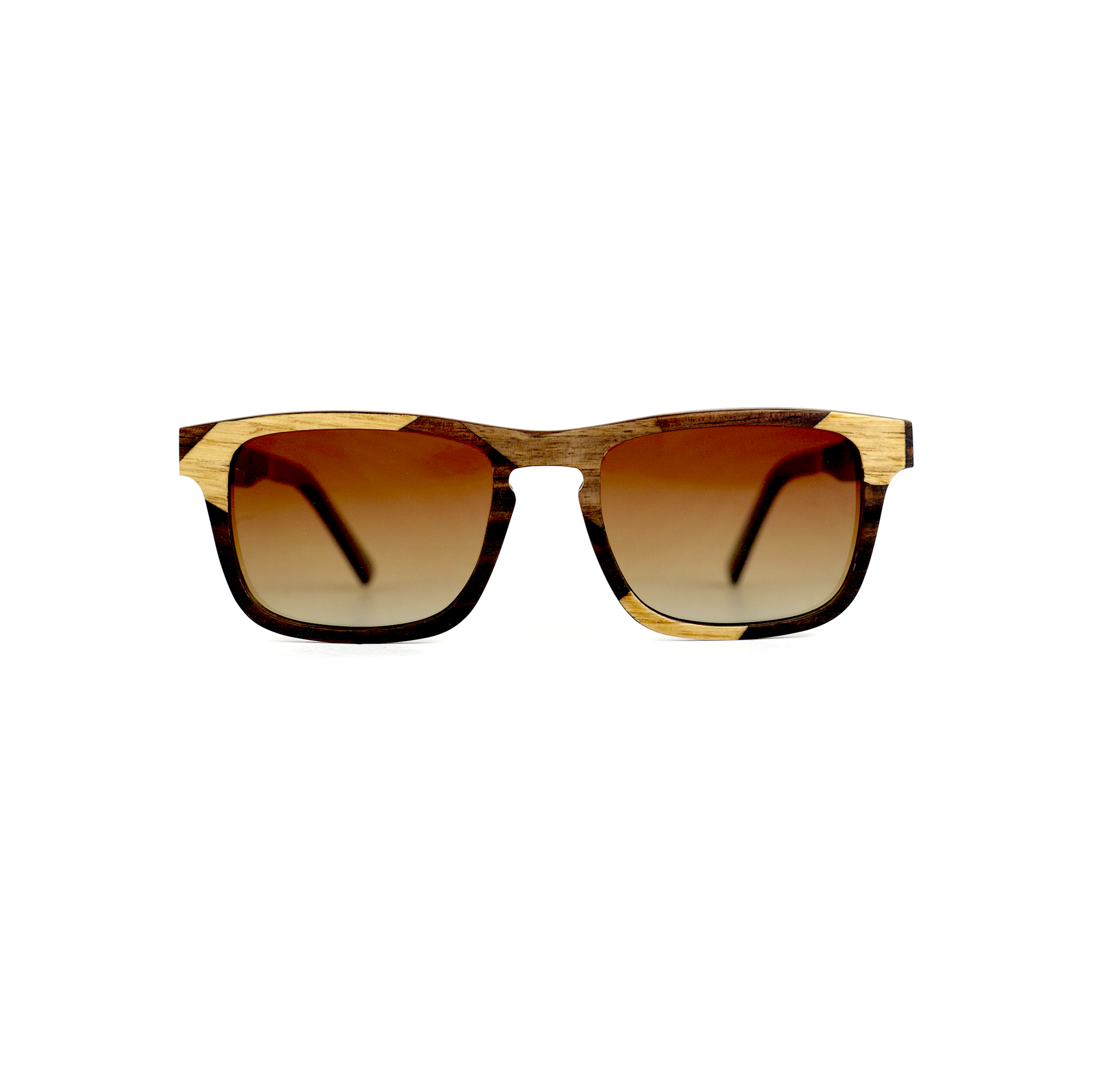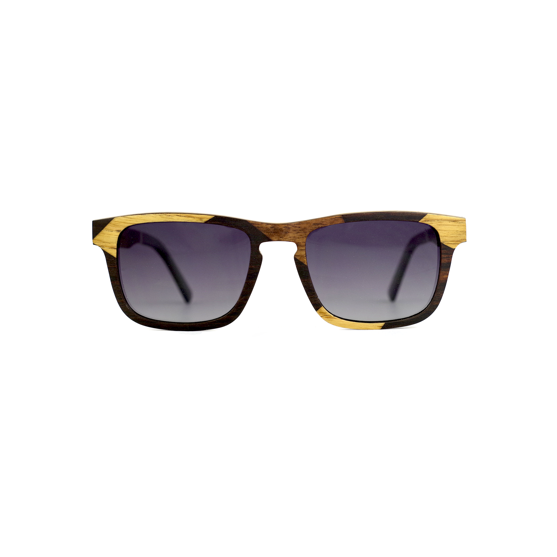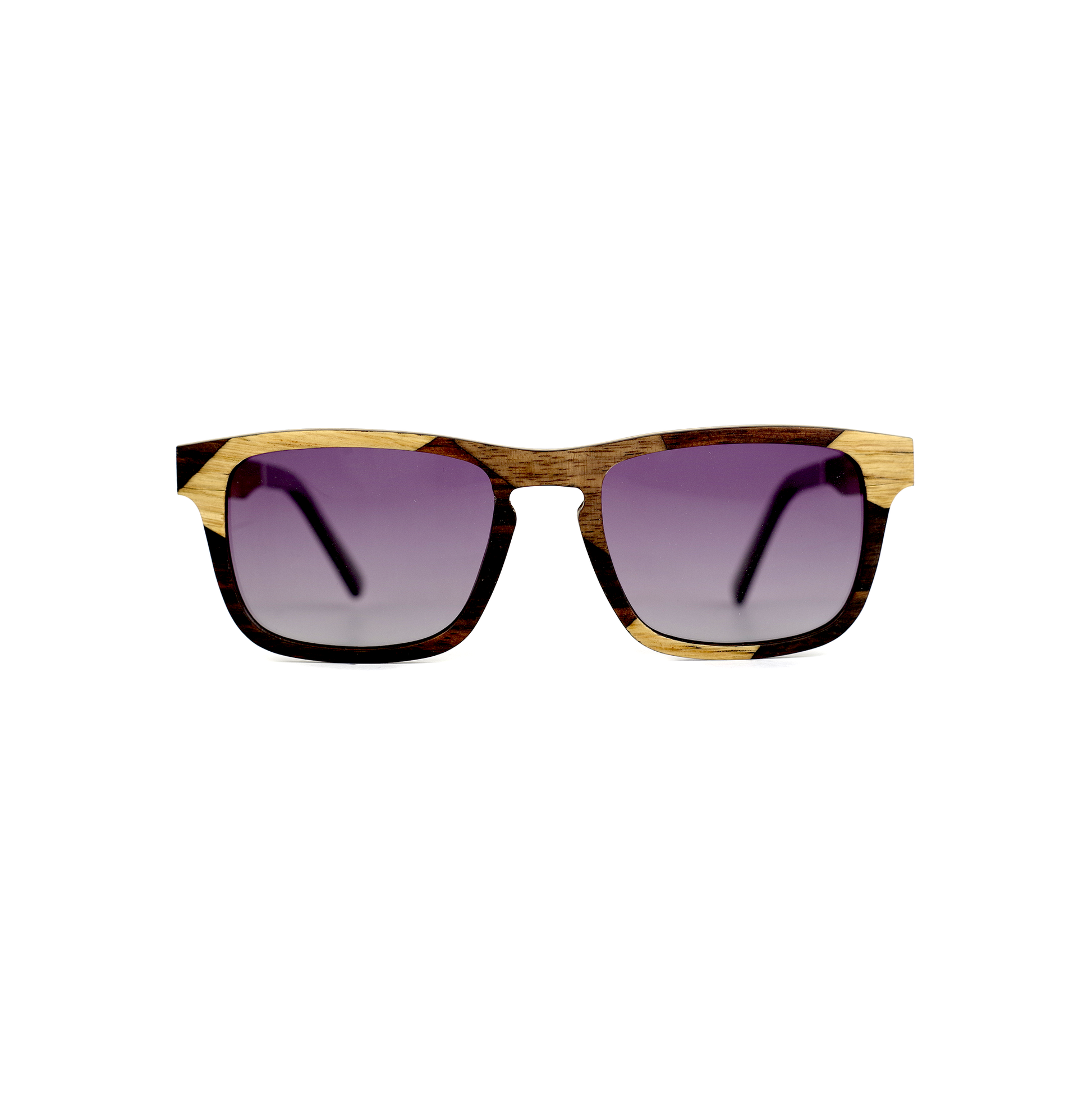 A template of wooden sunglasses out of the ordinary, with a great deal of particular work on the assembly of the woods on the front as well as on the branches.